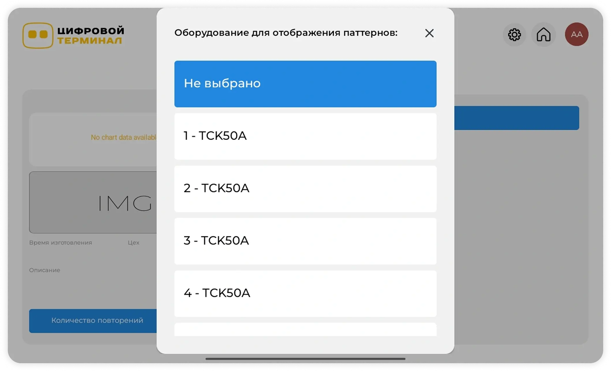 После перехода на страницу «Паттерны» открывается окно выбора оборудования на котором будет создаваться паттерн.