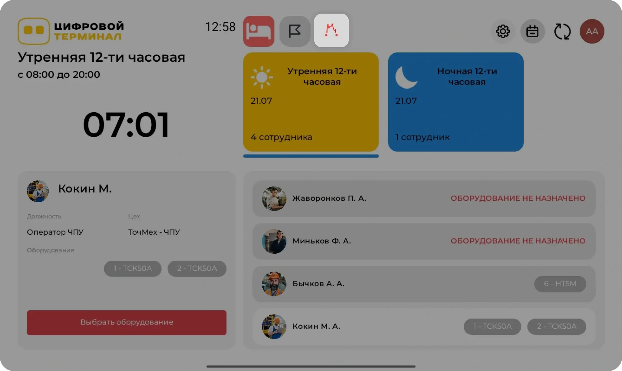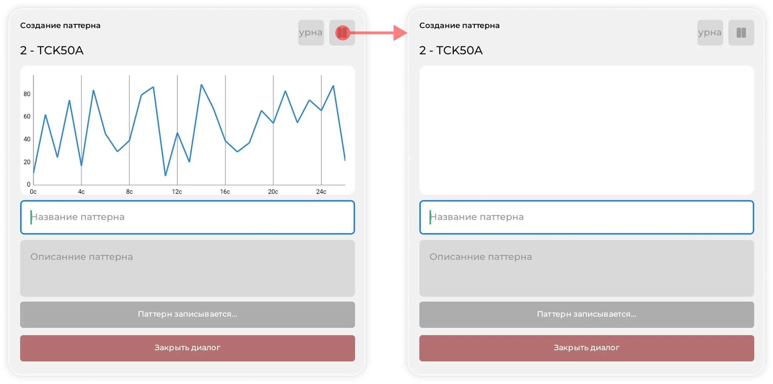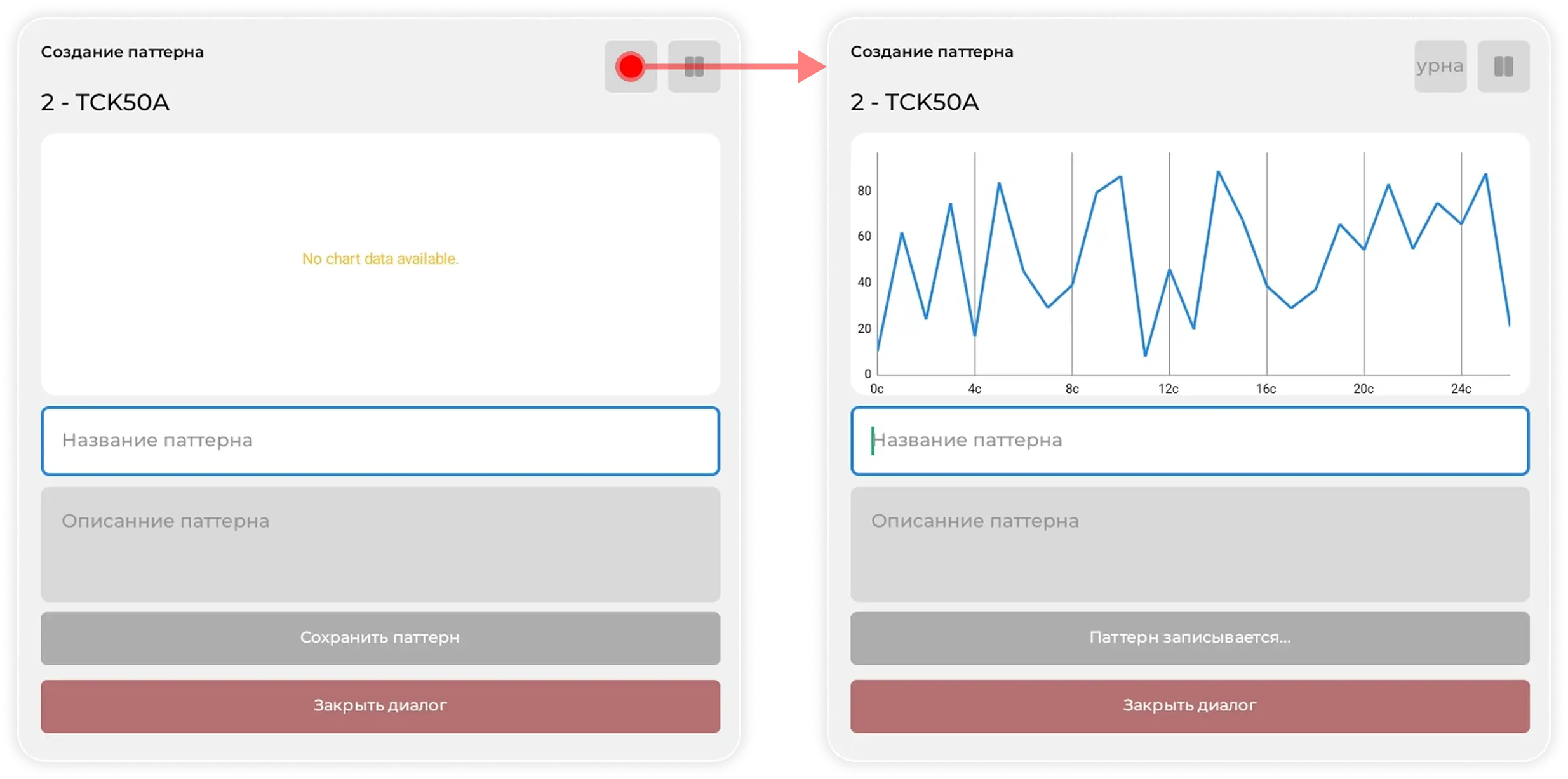 Система фиксирует время начала и окончания, связывает паттерны с конкретным оборудованием и сотрудниками, а также позволяет записывать паттерны с описанием и графиком показаний.