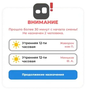 Если после начала смены оборудование не назначено ко всем сотрудникам на смене появится предупреждение: